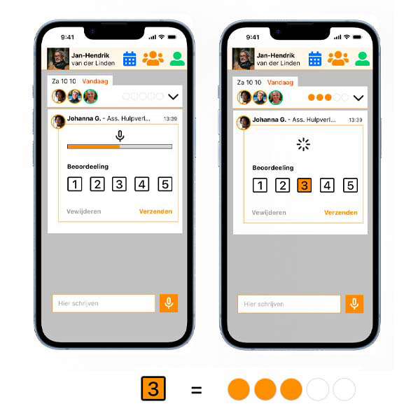 We reduced the workload for the health care providers with the clever UI. Only one click to rate the day, and only one click to record a report.